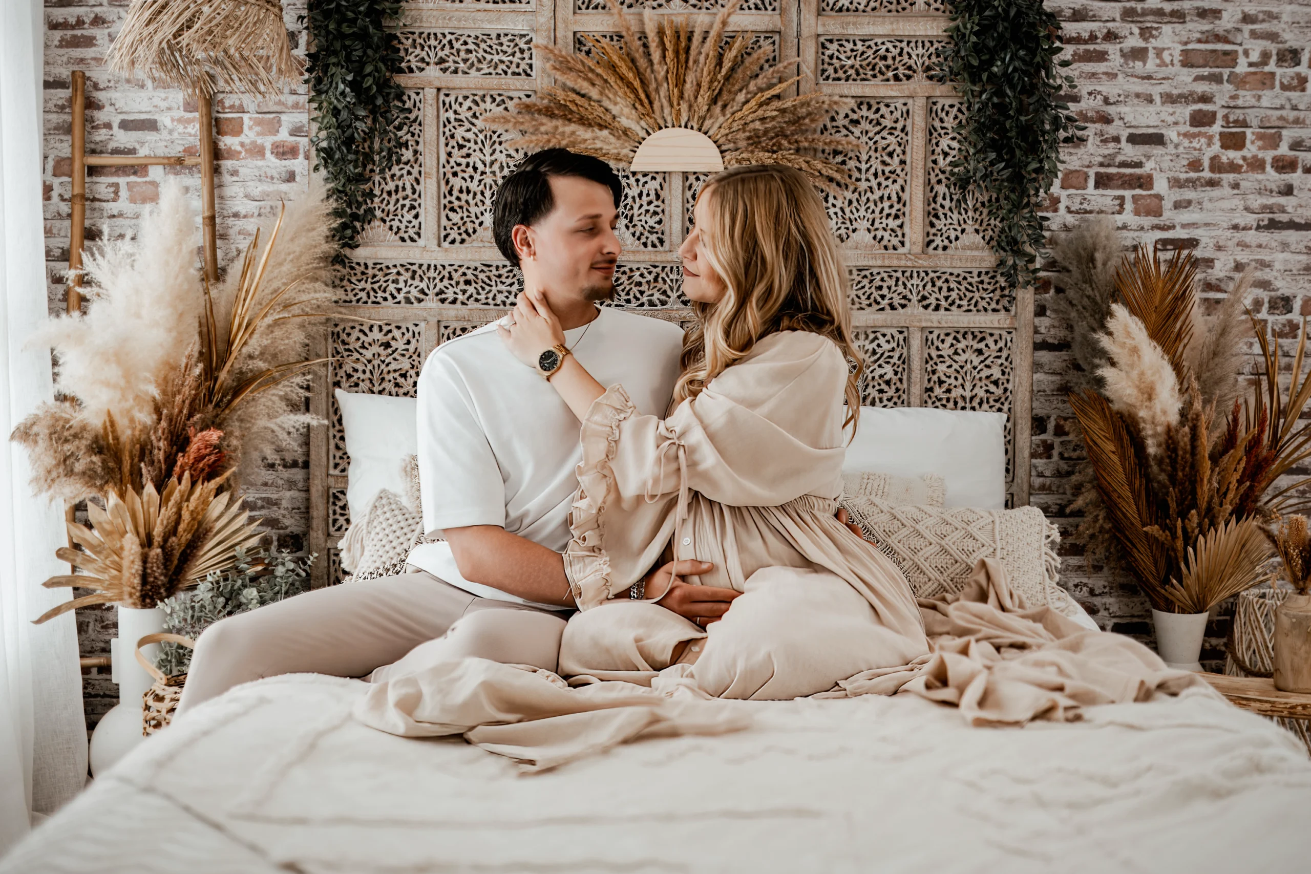 J’ai pour habitude de conseiller les futures mamans en leur disant de rapporter tout ce qui leur passe par la tête, qu’il s’agisse de robes, de jeans, de hauts, etc.. Tout en ayant conscience de l’association des couleurs avec mon décor (marron, beige, blanc…). On fera le tri ensemble à ton arrivée au studio. Et tu auras également accès à mon dressing dans lequel tu retrouveras la plupart des robes « bohème » que tu peux voir sur mes photos.